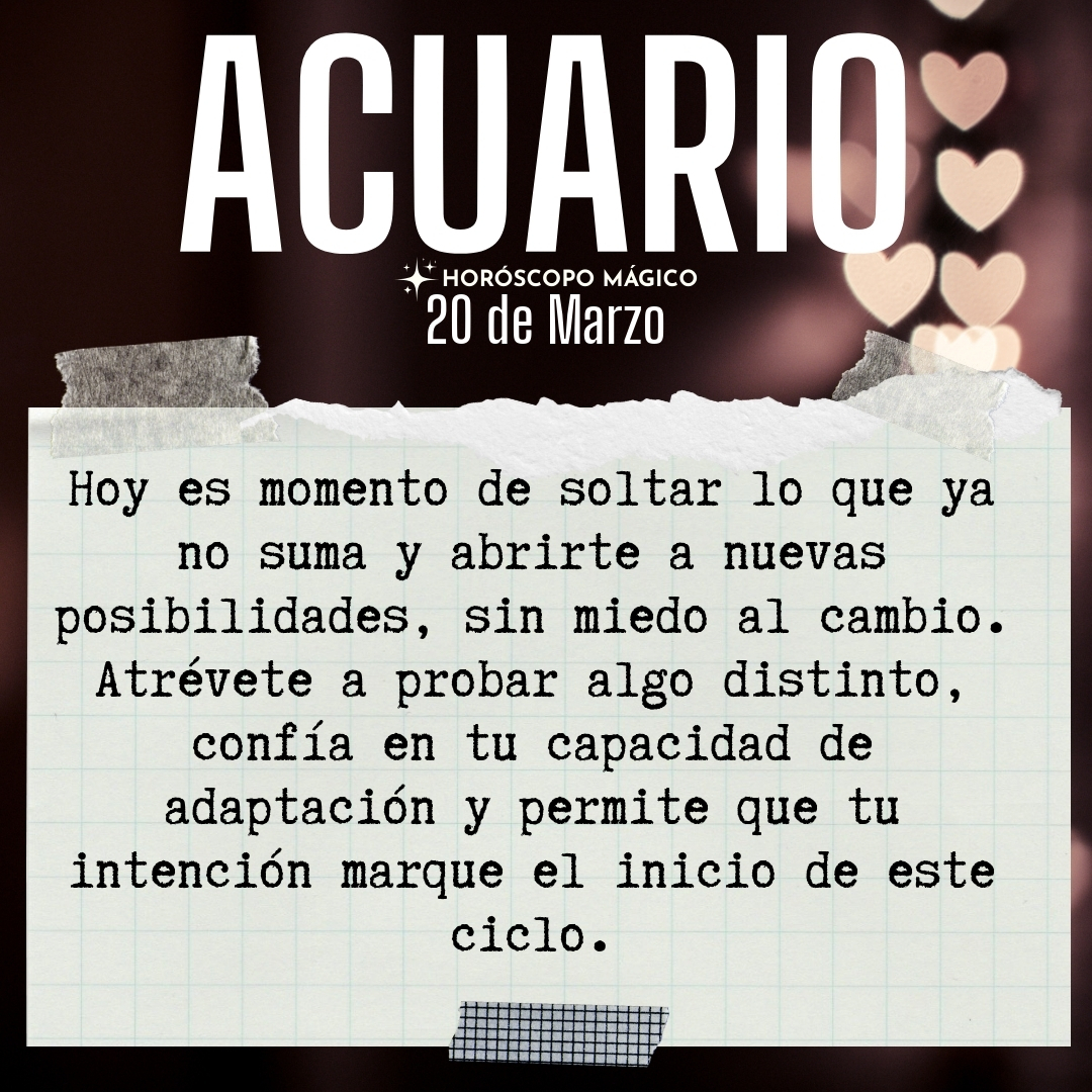 Hoy se abre un nuevo ciclo ante ti. Sientes el impulso de cambiar, de dejar atrás lo que ya no suma y abrirte a nuevas oportunidades. Es como si una brisa fresca recorriera tu interior, susurrándote que es momento de soltar viejas cargas y mirar con esperanza hacia lo que está por venir. No necesitas tener todo planeado; basta con dar el primer paso, aunque sea pequeño, aunque la incertidumbre te acompañe. El miedo al cambio es natural, una sombra que a veces se posa sobre tus hombros, pero recuerda que cada inicio trae consigo una promesa de crecimiento, una semilla de transformación que solo necesita tu decisión para germinar. Atrévete a mirar hacia adelante con curiosidad, no con temor, permitiendo que la vida te sorprenda.