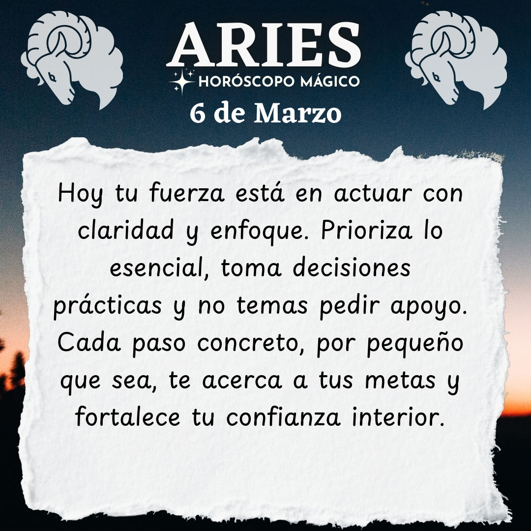Hoy el trabajo y el dinero te piden decisiones prácticas. Puede que sientas presión por resultados o incertidumbre sobre el futuro, pero tu capacidad de acción es tu mejor recurso. No te quedes en la preocupación, Aries. Da un paso concreto, aunque sea pequeño, hacia lo que quieres lograr. .