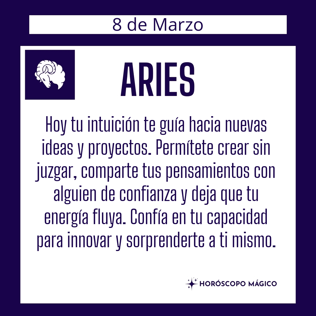 Hoy es un día para honrar tu voz interior y darle espacio para manifestarse. No te apresures, no te exijas más de la cuenta. Disfruta del proceso de descubrirte a través de lo que creas y compartes. Recuerda que cada día es una nueva oportunidad para reinventarte, para explorar nuevas facetas de ti mismo y para dejar una huella única en el mundo. Confía en tu intuición, Aries, y permite que te guíe hacia lugares insospechados y llenos de luz.