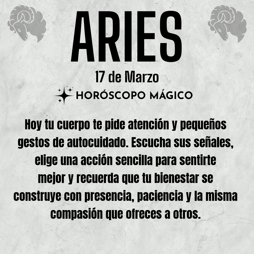 Hoy tu cuerpo te pide atención, Aries. Has estado postergando pequeños gestos de autocuidado, creyendo que puedes con todo, pero tu energía necesita un respiro. No ignores esas señales sutiles: el cansancio, la tensión en los hombros, ese anhelo de moverte o de descansar. A veces, el cuerpo susurra antes de gritar, y es en esos susurros donde puedes encontrar la oportunidad de reconectar contigo. Hazte el regalo de escuchar lo que tu cuerpo necesita, aunque sea solo por unos minutos. Un paseo, una comida más consciente, estirarte al despertar. No es egoísmo, es respeto por ti.