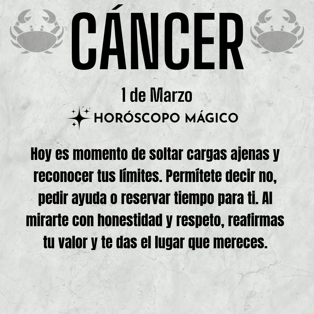 Hoy, elige una situación en la que puedas marcar un límite, aunque sea pequeño. Puede ser decir que no a un favor, pedir ayuda o simplemente darte un espacio para ti. No temas a la reacción de los otros. Quien te quiere de verdad, entenderá tu necesidad de cuidarte..
