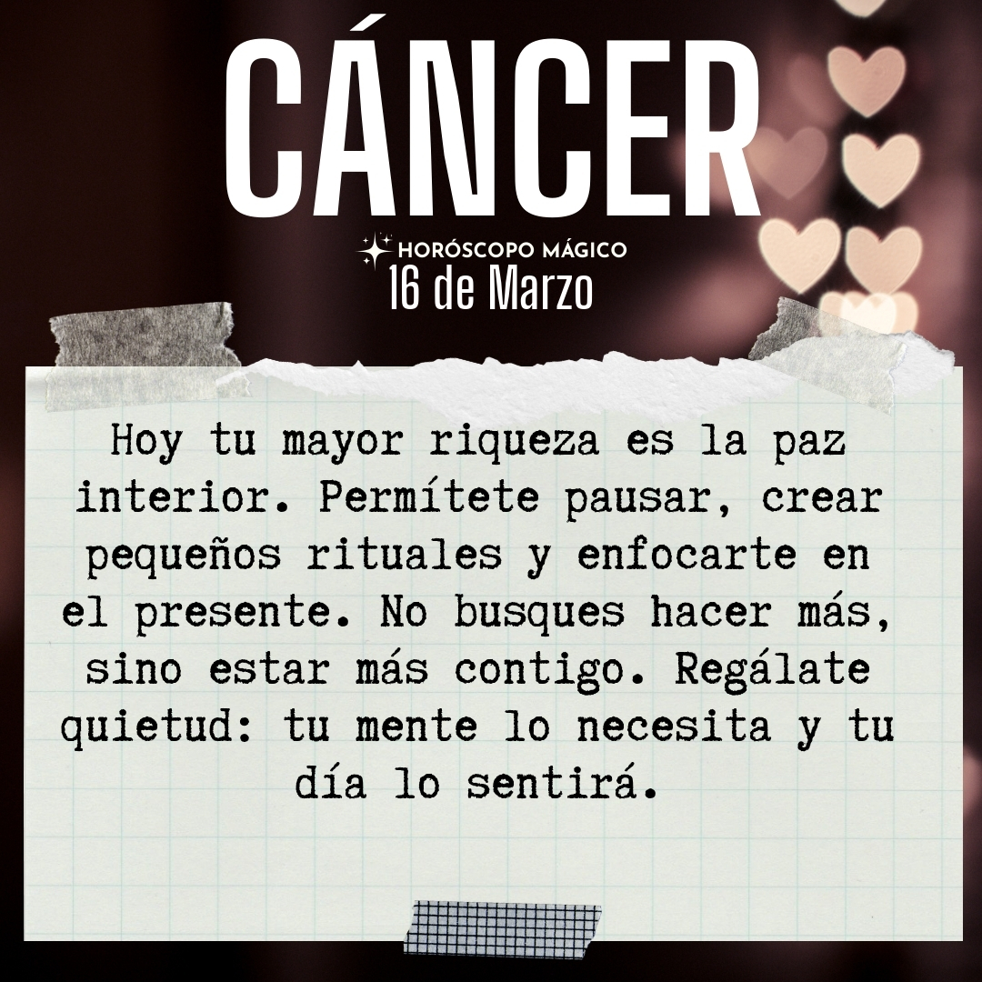 Tu mente lo agradecerá y tu día tomará otro color. Sentirás que, aunque las circunstancias no cambien, tu manera de habitarlas sí puede transformarse. Permítete este regalo, porque mereces vivir en paz contigo, incluso en medio del ruido. Hoy, más que nunca, elige cuidarte desde adentro.