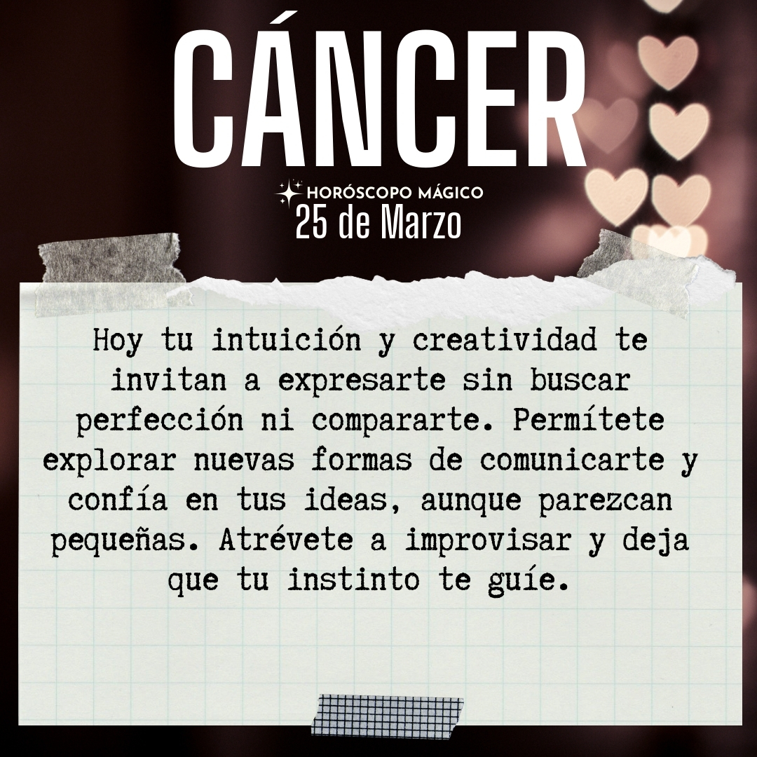Hoy es un buen día para confiar en ti, para dejar que tu voz interior te guíe y para celebrar cada pequeño avance. No importa si el resultado no es perfecto o si nadie más lo entiende; lo importante es que te atreviste a escucharte y a expresarte. En ese acto de valentía y sinceridad, encontrarás una satisfacción profunda y una conexión renovada contigo mismo.