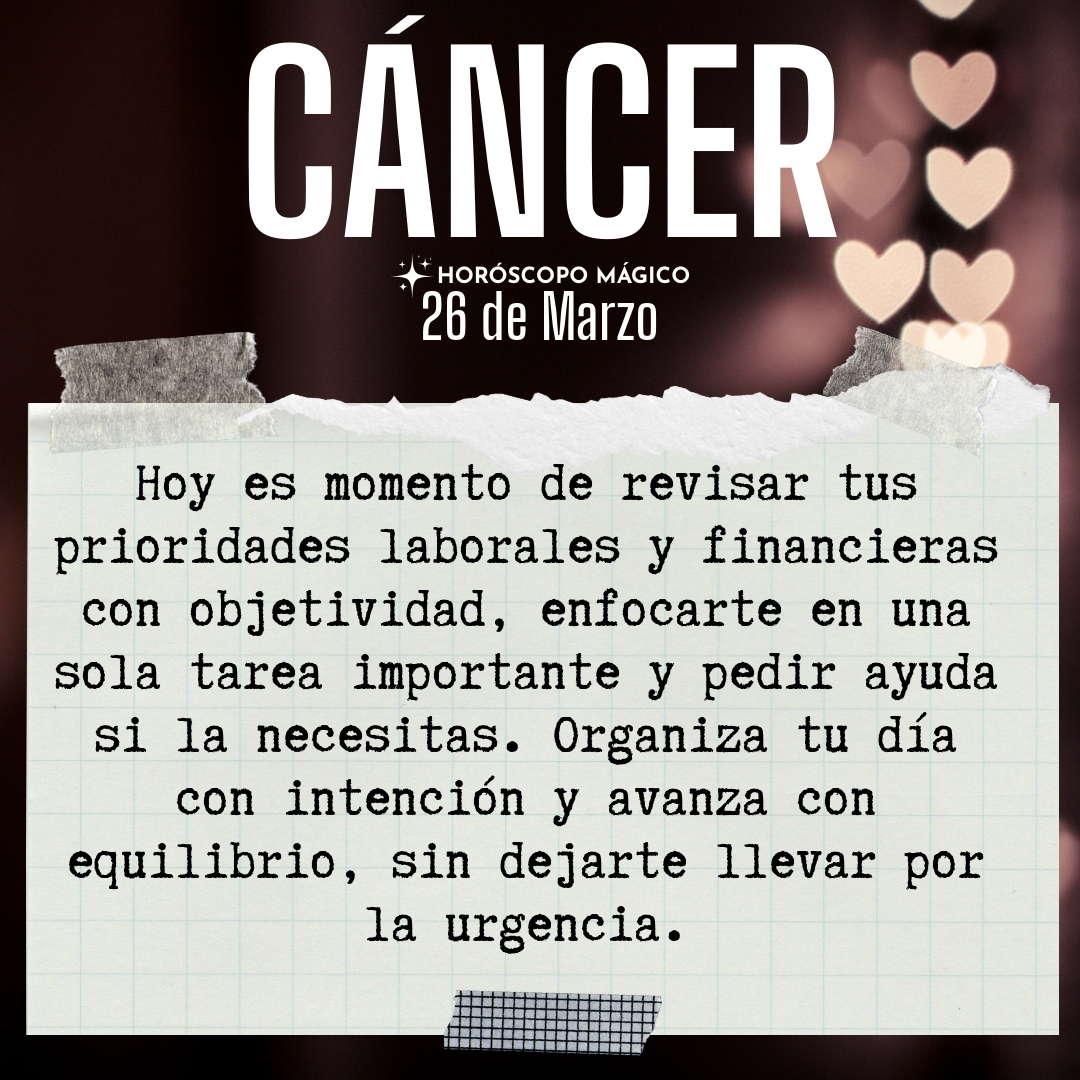♋ Cáncer hoy Jueves 26 de Marzo