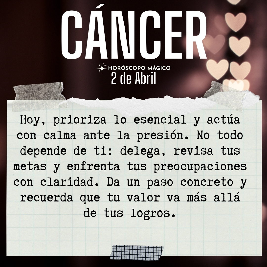 ♋ Cáncer hoy Jueves 2 de Abril