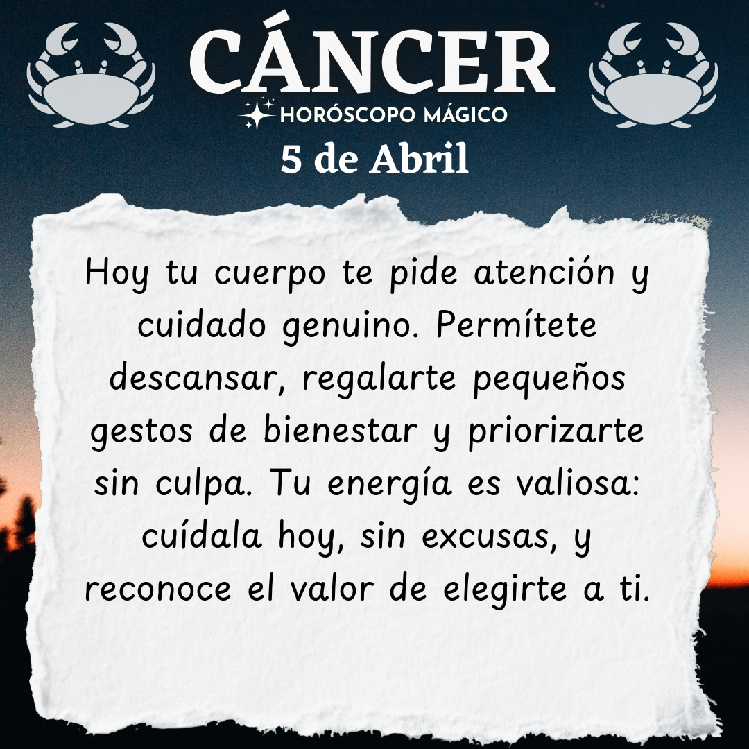 ♋ Cáncer hoy Domingo 5 de Abril