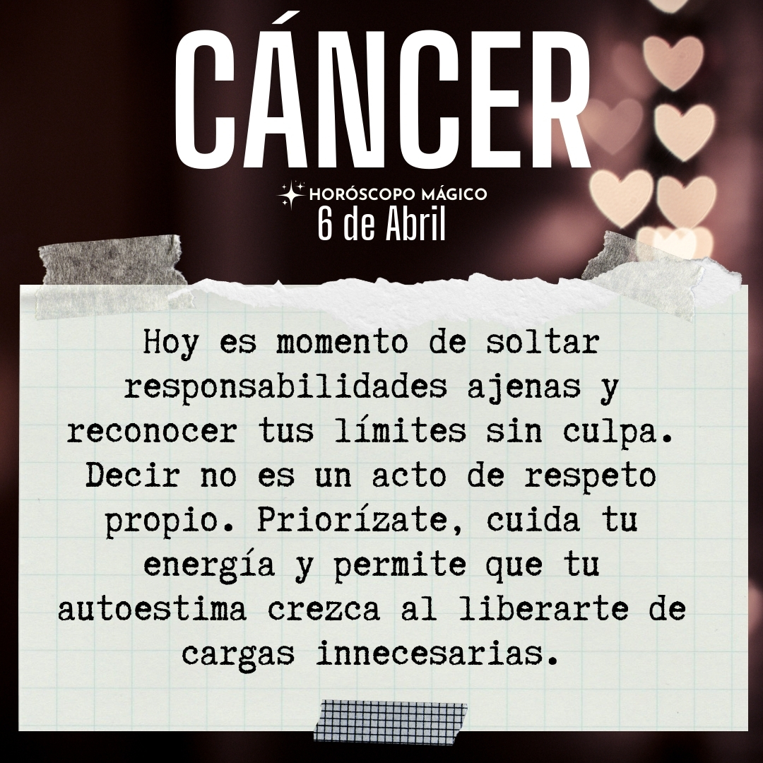 Hoy toca revisar tus límites. Has cargado con responsabilidades que no te corresponden, quizás por costumbre o por miedo a decepcionar. Es posible que, en más de una ocasión, hayas sentido el peso de expectativas ajenas sobre tus hombros, como si tu valor dependiera de cuánto puedes sostener por los demás. Pero hoy es momento de preguntarte: ¿qué peso puedes soltar? Permítete mirar con honestidad aquello que llevas y que, en realidad, no te pertenece. No tienes que ser el sostén de todo ni de todos. Reconocer tus límites no es egoísmo, es respeto por ti mismo, es un acto de amor propio que te invita a cuidar de tu energía y de tu bienestar.