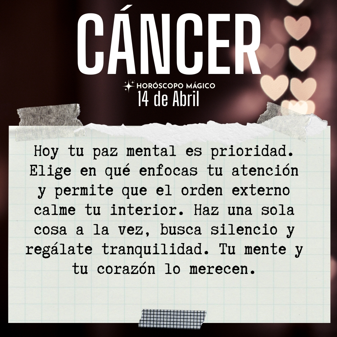 Hoy, apaga el ruido externo. Limita el tiempo en redes, busca momentos de silencio, y rodéate de lo que te da calma. Si puedes, medita o simplemente siéntate en quietud unos minutos. La mente se aclara cuando le das espacio para descansar. No te exijas productividad constante. Recuerda que tu valor no depende de lo que logres hoy, sino de cómo te cuidas y te escuchas. Permítete desconectar de las expectativas ajenas y conectar con tu propio ritmo.