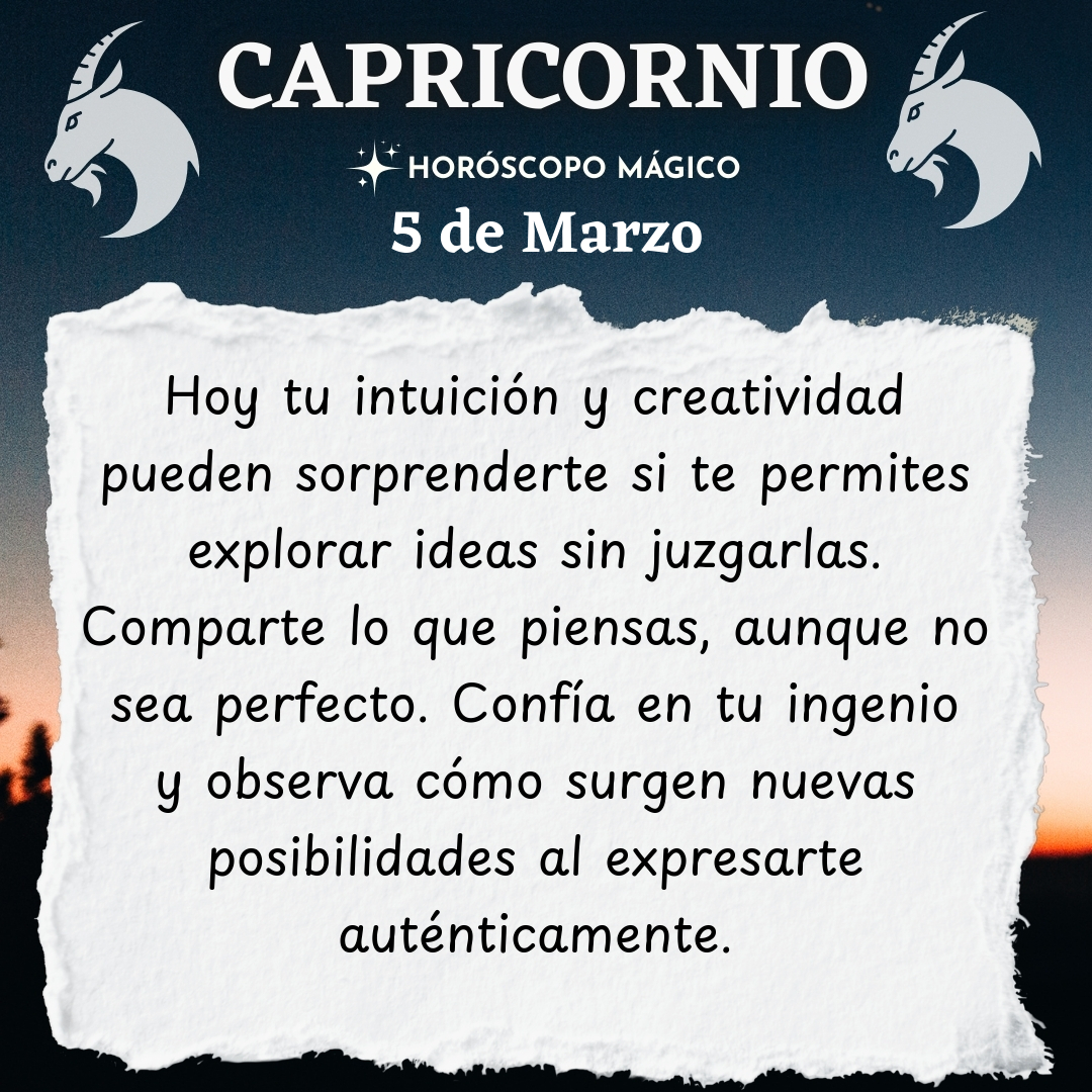 Tu intuición y creatividad están más despiertas de lo que crees, Capricornio. A veces, te aferras tanto a lo lógico y lo comprobable que olvidas escuchar esa voz interna que te susurra ideas nuevas. Hoy es un buen día para dejarte sorprender por tu propio ingenio. No descartes esas ocurrencias que parecen poco prácticas a primera vista; pueden ser la semilla de algo grande..