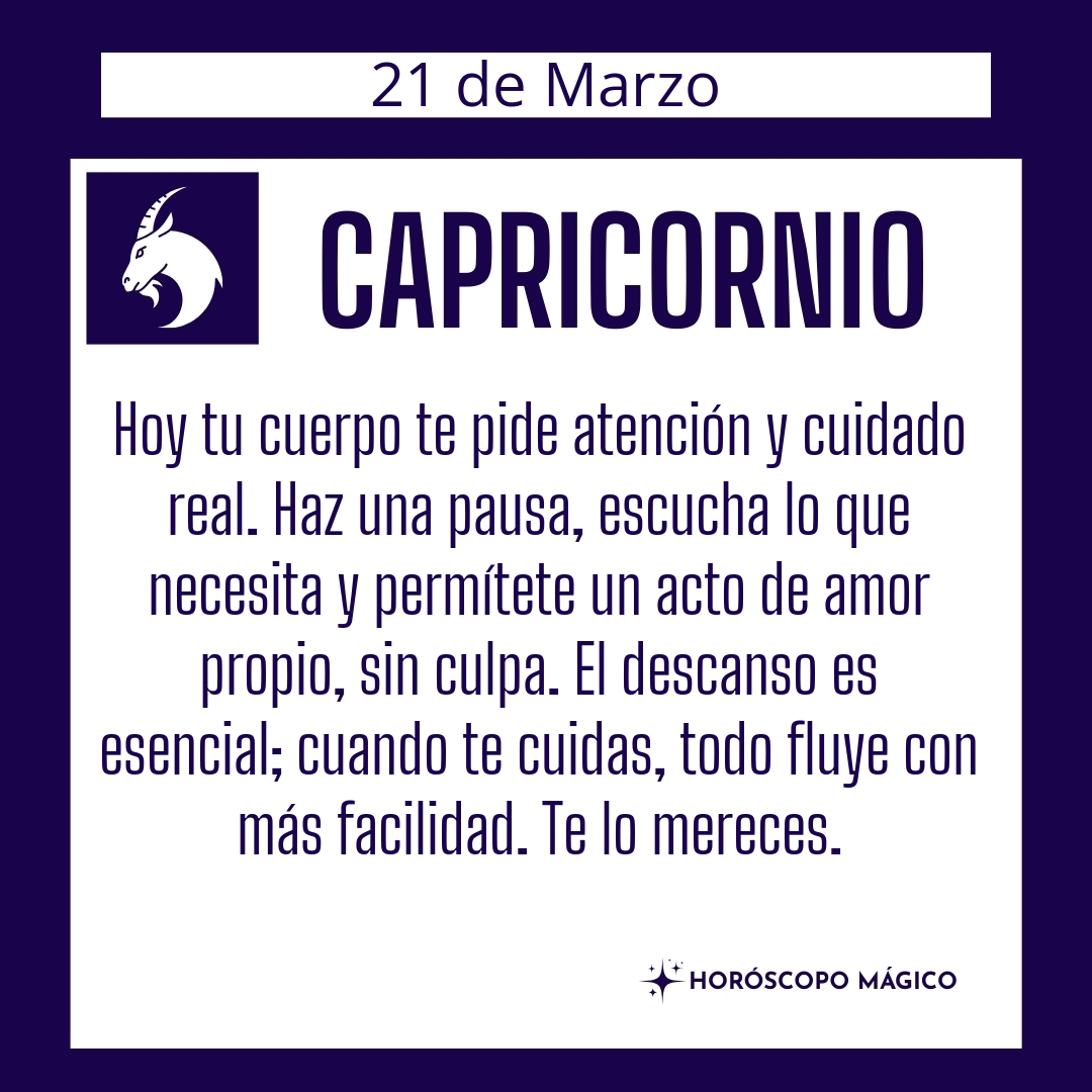 Hoy tu cuerpo te pide atención, Capricornio. No es solo cansancio, es una llamada silenciosa a escucharte más allá de la rutina. Has estado priorizando lo urgente y dejando para después lo esencial: tu bienestar. El autocuidado no es un lujo, es la base sobre la que se sostiene todo lo demás. Si te detienes un momento, notarás señales sutiles: una tensión en los hombros, un bostezo que ignoras, ese antojo de silencio. No te castigues por sentirte agotado, reconoce que eres humano y mereces descanso. A veces, el simple hecho de reconocer tu vulnerabilidad es el primer paso para sanar, para permitirte ser más compasivo contigo mismo.