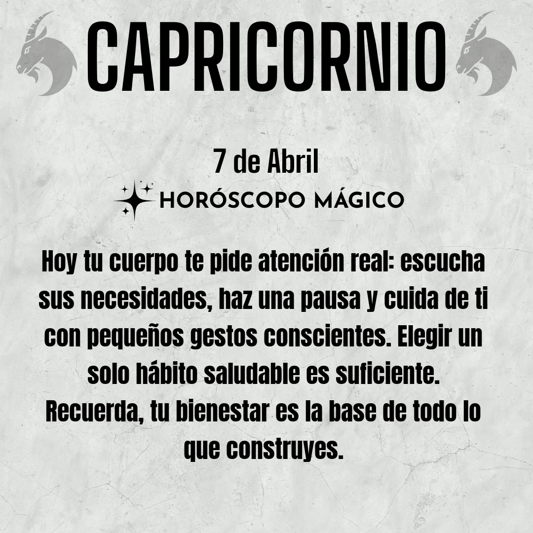 Hoy tu cuerpo te pide atención, Capricornio. No se trata solo de cumplir con rutinas, sino de escucharte de verdad. ¿Hace cuánto no te detienes a sentir cómo respiras, cómo caminas, cómo te alimentas? El ritmo de la vida puede empujarte a ignorar señales sutiles, pero hoy es un buen día para reconectar con tu energía física. Haz una pausa, aunque sea breve, y pregúntate qué necesitas de verdad: descanso, movimiento, agua, un alimento que te nutra de verdad. Permítete sentir cada latido, cada inhalación, como si fueran mensajes que tu cuerpo te envía, recordándote que eres más que tus pensamientos y tus obligaciones.
