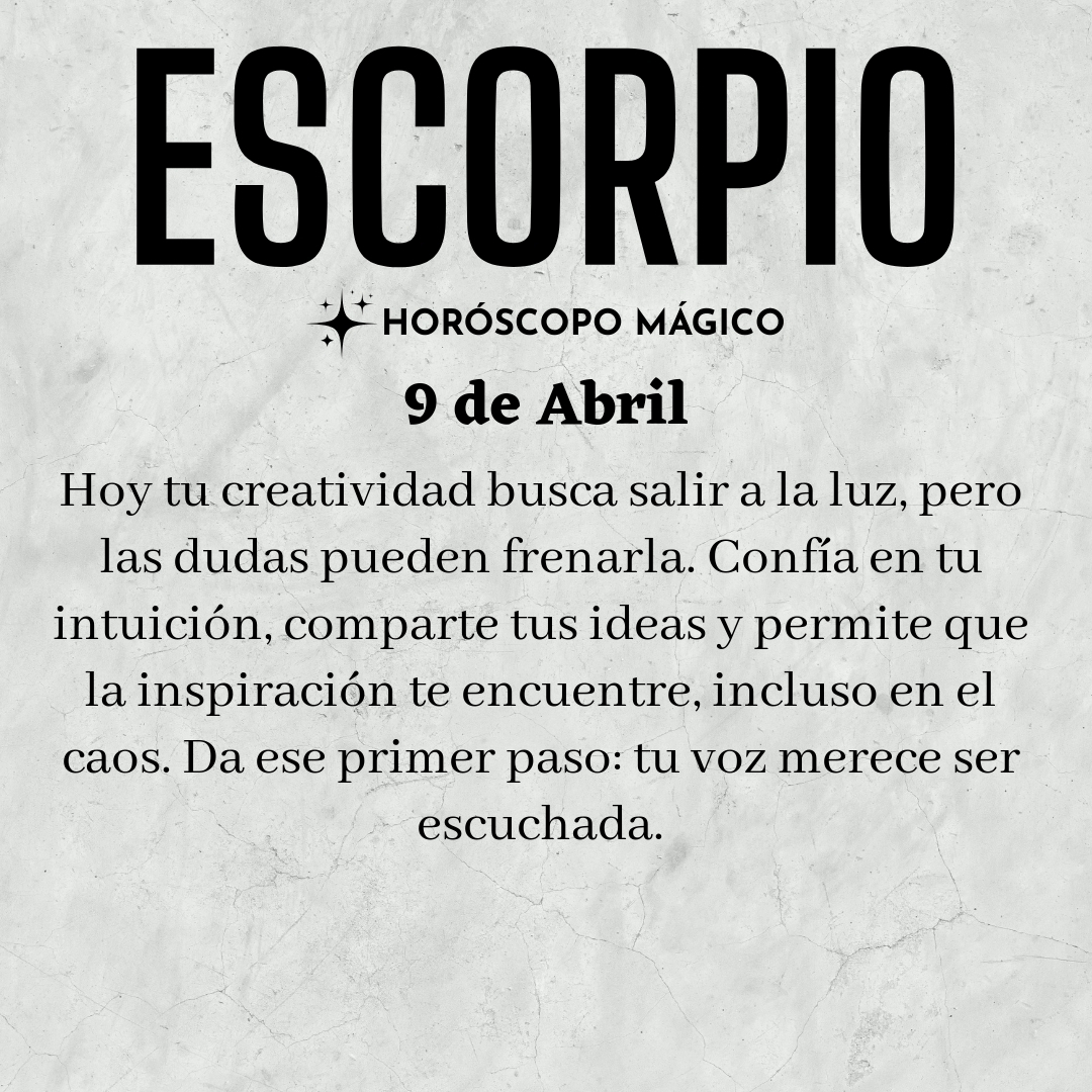 Al final del día, lo más importante es que te sientas fiel a ti mismo, que puedas mirar atrás y reconocer que te diste la oportunidad de explorar, de sentir, de crear. No te exijas perfección, solo presencia y honestidad contigo mismo. La creatividad es un viaje, no un destino, y hoy tienes la oportunidad de dar un paso más en ese hermoso recorrido. Confía en ti, Escorpio, y deja que tu luz interior se exprese sin miedo.