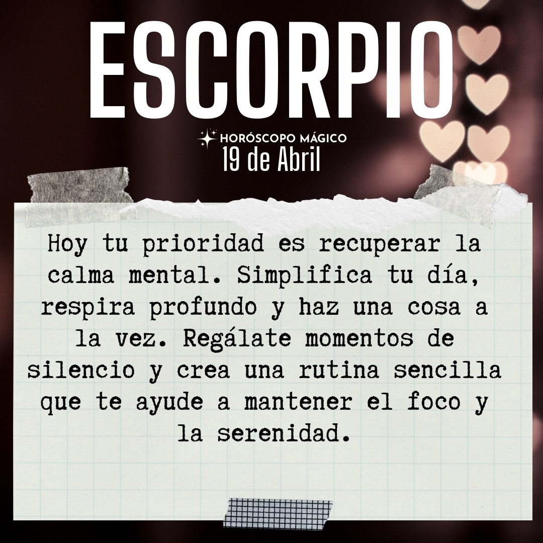 La paz mental es tu prioridad hoy. Has estado disperso, con la mente saltando de un tema a otro, y eso te agota más de lo que imaginas. Es como si tuvieras mil voces hablando al mismo tiempo dentro de ti, cada una exigiendo atención, cada una arrastrándote en una dirección distinta. Esa sensación de cansancio, de no llegar a nada concreto, se va acumulando y pesa en tu ánimo. Es momento de recuperar el enfoque, de crear una rutina que te sostenga y te devuelva la calma. No necesitas grandes cambios, solo pequeños hábitos que te ayuden a estar presente, a sentirte dueño de tu propio tiempo y de tus pensamientos.