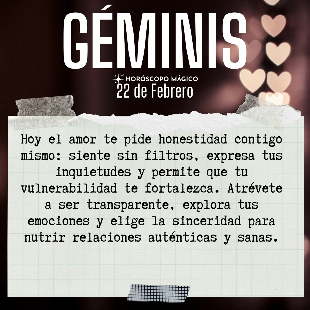 Hoy puedes dar un paso valiente: poner en palabras lo que sientes, aunque no sea perfecto. La honestidad emocional es el puente hacia relaciones más auténticas y sanas. Si te atreves a ser transparente, descubrirás que el amor propio y el amor hacia los demás se alimentan mutuamente..