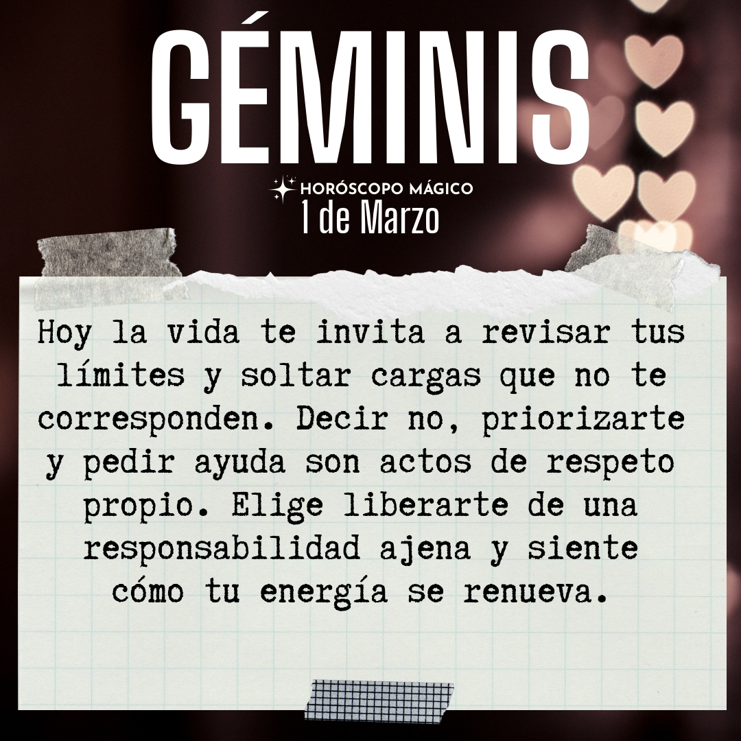 Hoy la vida te pide que revises tus límites, esos que a veces cedes por miedo a decepcionar. Has cargado con responsabilidades ajenas, creyendo que así demuestras tu valor. Pero tu autoestima no depende de cuánto das, sino de cuánto te respetas. Soltar cargas no es egoísmo, es salud mental..