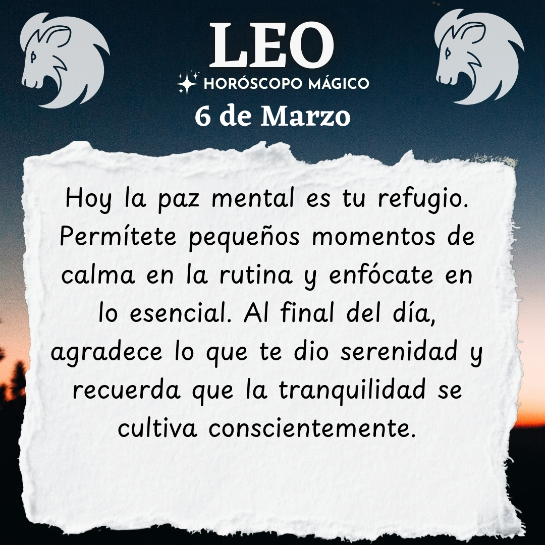 Hoy la paz mental se convierte en tu mayor tesoro. Has estado rodeado de ruido, de exigencias y de expectativas ajenas, y eso puede dispersar tu energía. Es momento de reconectar con tu centro, de buscar calma en medio del movimiento. No necesitas aislarte del mundo, solo encontrar pequeños refugios de tranquilidad en tu día..