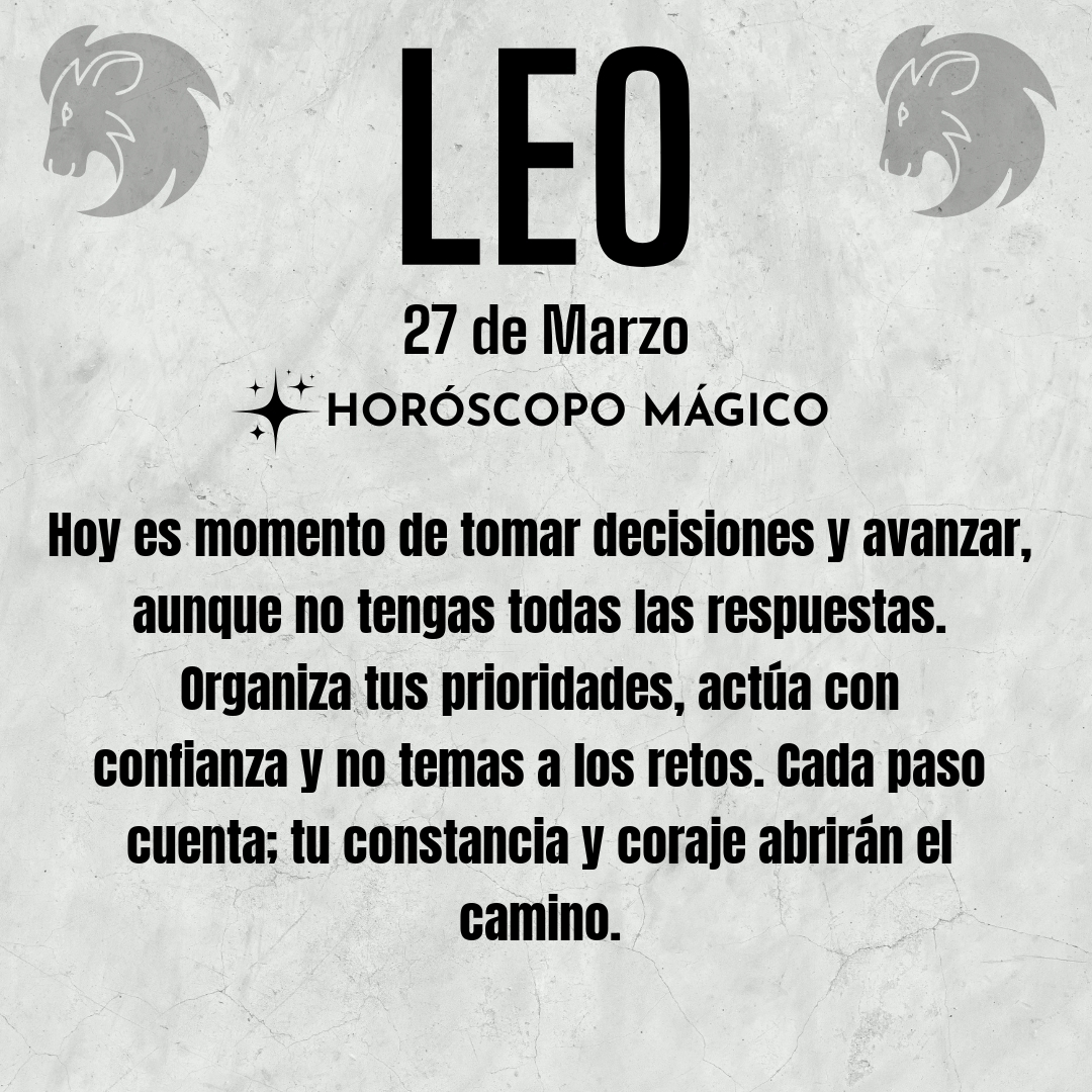 Da ese paso, Leo, y verás cómo el camino se despeja. Permítete sentir orgullo por tu valentía, por atreverte a avanzar aun cuando el miedo te susurre al oído. Hoy es un día para confiar en ti, para honrar tu proceso y reconocer que cada decisión, por pequeña que sea, es un acto de amor propio. El futuro se construye con los pasos que das hoy, y tú tienes la fuerza para avanzar.