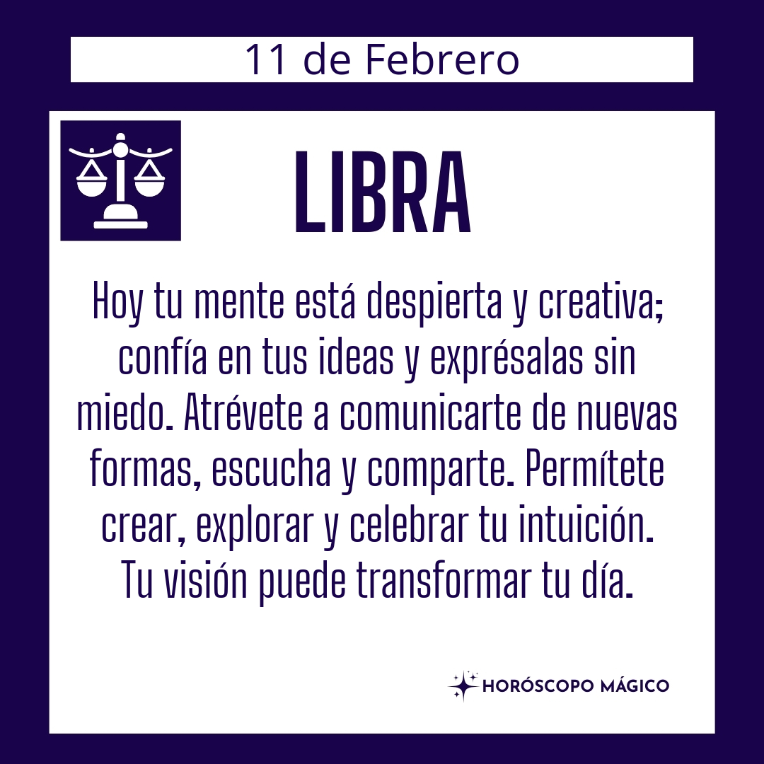 Tu mente está especialmente despierta hoy, Libra. Las ideas fluyen, la intuición te susurra respuestas que antes no veías. Es un día para confiar en tu creatividad y permitirte explorar nuevas formas de comunicarte. No te limites a lo de siempre: atrévete a expresar lo que piensas, a compartir tus ideas, a escuchar también lo que otros tienen para decirte. La inspiración llega cuando te abres al intercambio..