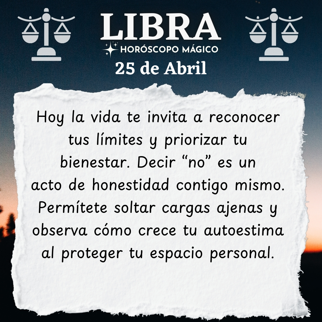 Hoy la vida te invita a revisar tus límites, Libra. Has cargado con responsabilidades que no siempre te corresponden, quizás por miedo a decepcionar o por costumbre de complacer. Pero tu energía no es infinita, y aprender a decir “no” es un acto de amor propio. No se trata de rechazar a los demás, sino de respetar tus propias necesidades. A veces, el deseo de armonía te lleva a priorizar el bienestar ajeno por encima del tuyo, olvidando que también mereces cuidado y atención. Permítete reconocer que tu tiempo y tu energía son valiosos, y que no tienes que estar disponible para todo y para todos.