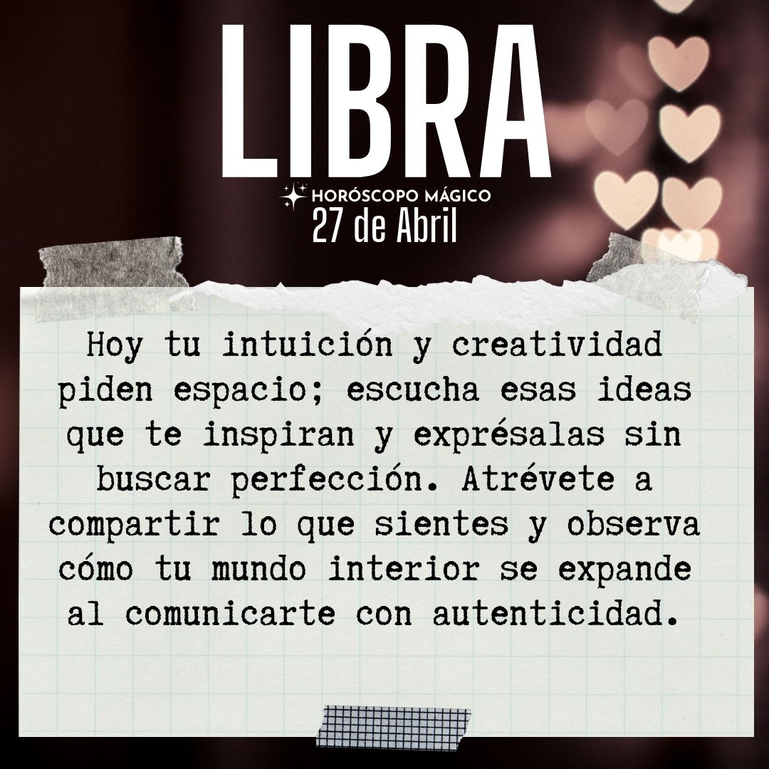 Tu intuición hoy está especialmente despierta, Libra. Sientes una vibración interna, como si algo en tu interior te susurrara caminos nuevos, posibilidades que antes parecían lejanas o inalcanzables. Hay ideas que te rondan la cabeza, proyectos que te ilusionan o conversaciones que te gustaría iniciar, pero que quizás has postergado por miedo o inseguridad. No ignores esas señales internas: tu creatividad necesita espacio para expresarse, para respirar y tomar forma en el mundo real. A veces, la mente racional intenta frenar lo que el corazón ya sabe, y es en esos momentos cuando más necesitas confiar en esa voz suave pero persistente que te impulsa hacia adelante.