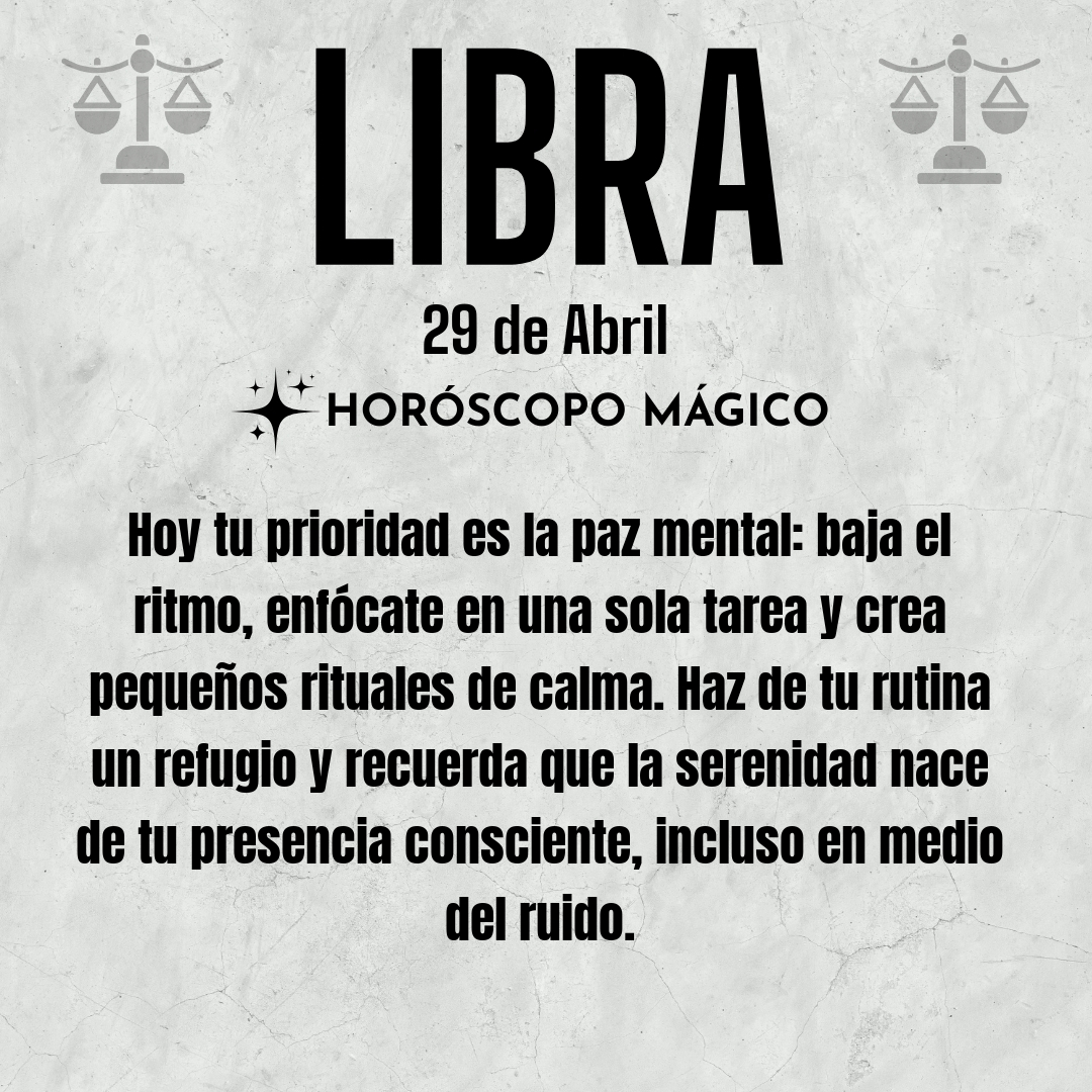El equilibrio empieza en lo pequeño, Libra. No necesitas grandes gestos para reencontrarte contigo mismo; basta con la intención de estar presente y el compromiso de cuidar tu paz interior. Permítete ser humano, con tus dudas y tus certezas, y recuerda que cada día es una nueva oportunidad para elegir la calma, para volver a tu centro y para construir, paso a paso, el bienestar que mereces.