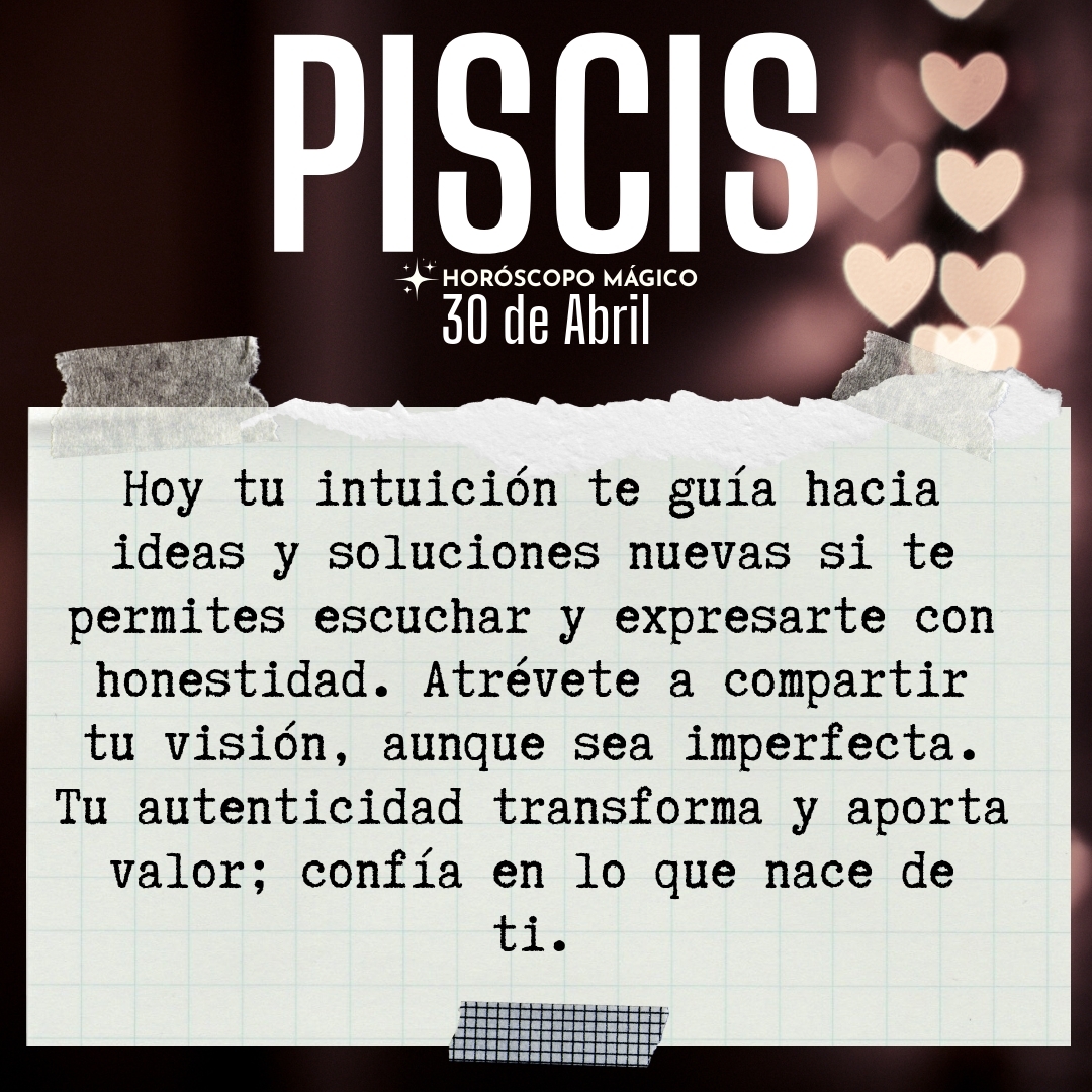 Tu intuición está más despierta de lo que crees, Piscis. Hay una voz suave en tu interior que te susurra verdades, aunque a veces prefieras ignorarla por miedo a equivocarte o por la costumbre de seguir lo conocido. Hoy es un día especial para confiar en esas corazonadas que surgen sin previo aviso, esas sensaciones que te recorren el cuerpo y te invitan a mirar más allá de lo evidente. Permítete escuchar en silencio, sin la presión de encontrar respuestas inmediatas, sin la necesidad de controlar cada paso. A veces, lo más valioso surge cuando te das el permiso de simplemente estar presente y receptivo.