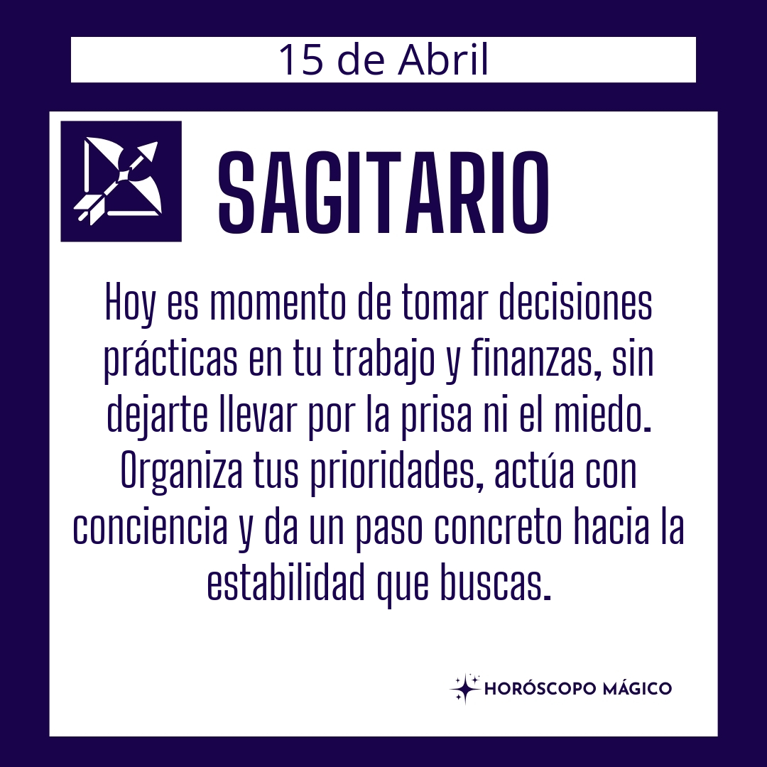 ♐ Sagitario hoy Miércoles 15 de Abril