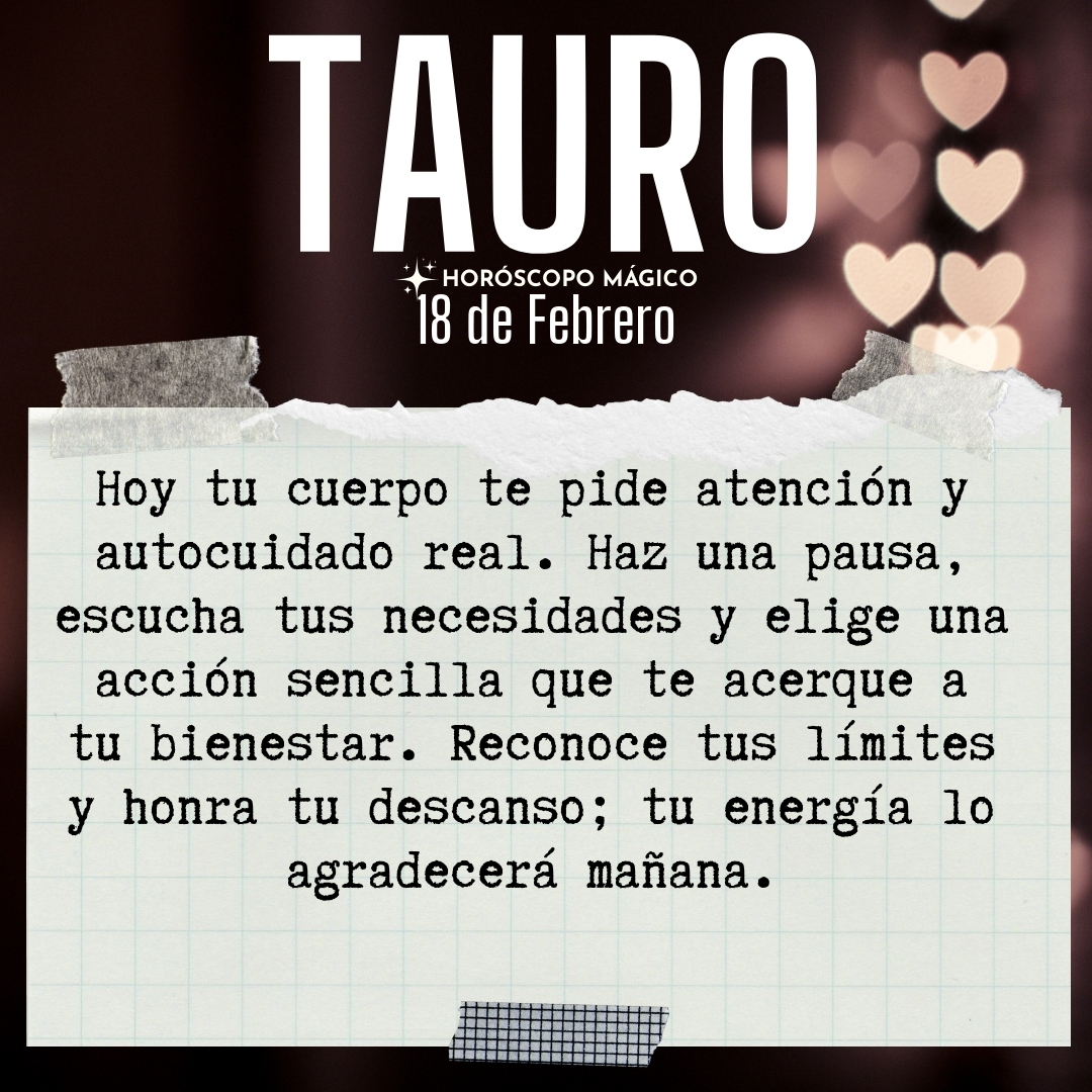 Hoy tu cuerpo te pide atención, Tauro. No es solo cansancio físico, es una llamada silenciosa a escucharte más allá de la rutina. Has estado postergando pequeños gestos de autocuidado, creyendo que no hacen diferencia, pero tu energía lo nota. El bienestar no es un lujo, es la base sobre la que se sostiene todo lo demás. Haz una pausa, respira profundo y pregúntate qué necesitas realmente: tal vez un paseo, una comida más consciente, o simplemente dormir un poco más. .