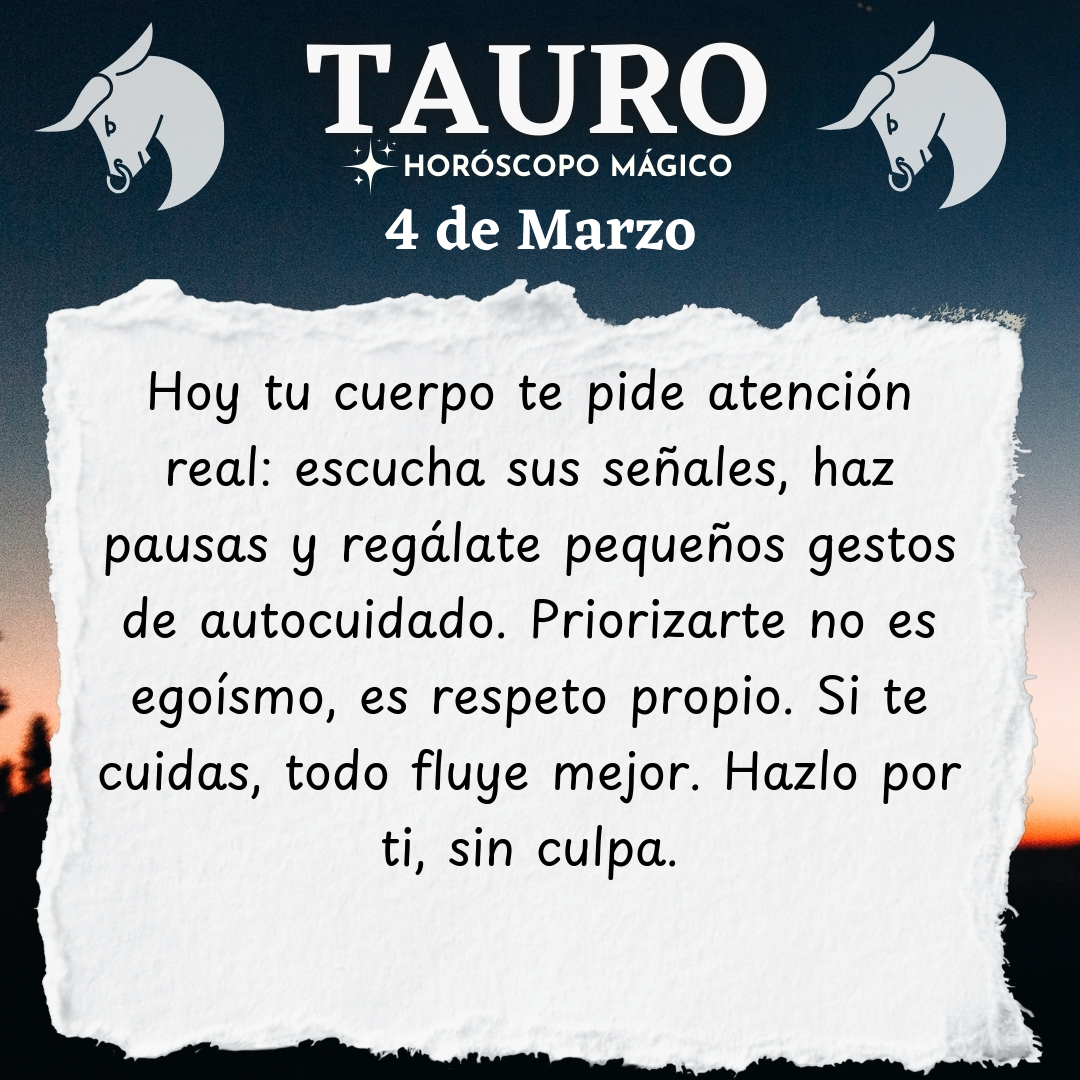 Hoy tu cuerpo te pide atención. No es solo cansancio, es una llamada a escucharte más allá de la rutina. Has estado postergando pequeños gestos de autocuidado, creyendo que no hacen diferencia, pero tu energía lo nota. El bienestar no es un lujo, es la base sobre la que construyes todo lo demás. Haz una pausa, respira profundo y pregúntate qué necesitas realmente. No se trata de grandes cambios, sino de pequeños compromisos contigo: dormir mejor, hidratarte, moverte aunque sea un poco más..