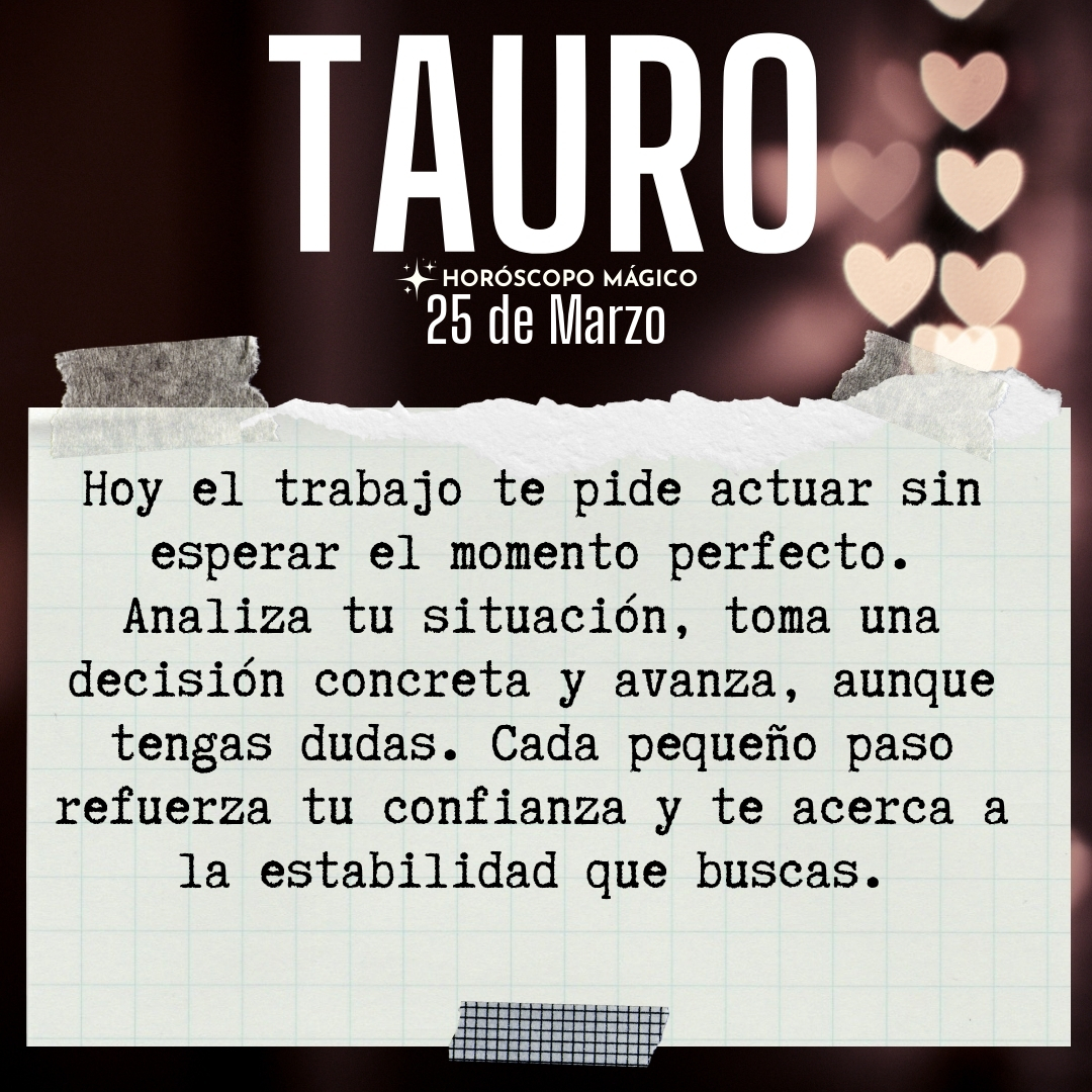 Hoy el trabajo te exige una mirada práctica, Tauro. Hay decisiones que no pueden esperar más, aunque a veces preferirías quedarte en la comodidad de lo conocido. Quizá llevas tiempo dándole vueltas a un tema económico o profesional, esperando el momento perfecto para actuar, como si en algún instante todo fuera a alinearse mágicamente. Pero la perfección no existe, y la vida te pide movimiento, aunque sea con dudas, aunque sientas ese vértigo en el estómago que aparece cuando sabes que algo importante está en juego.