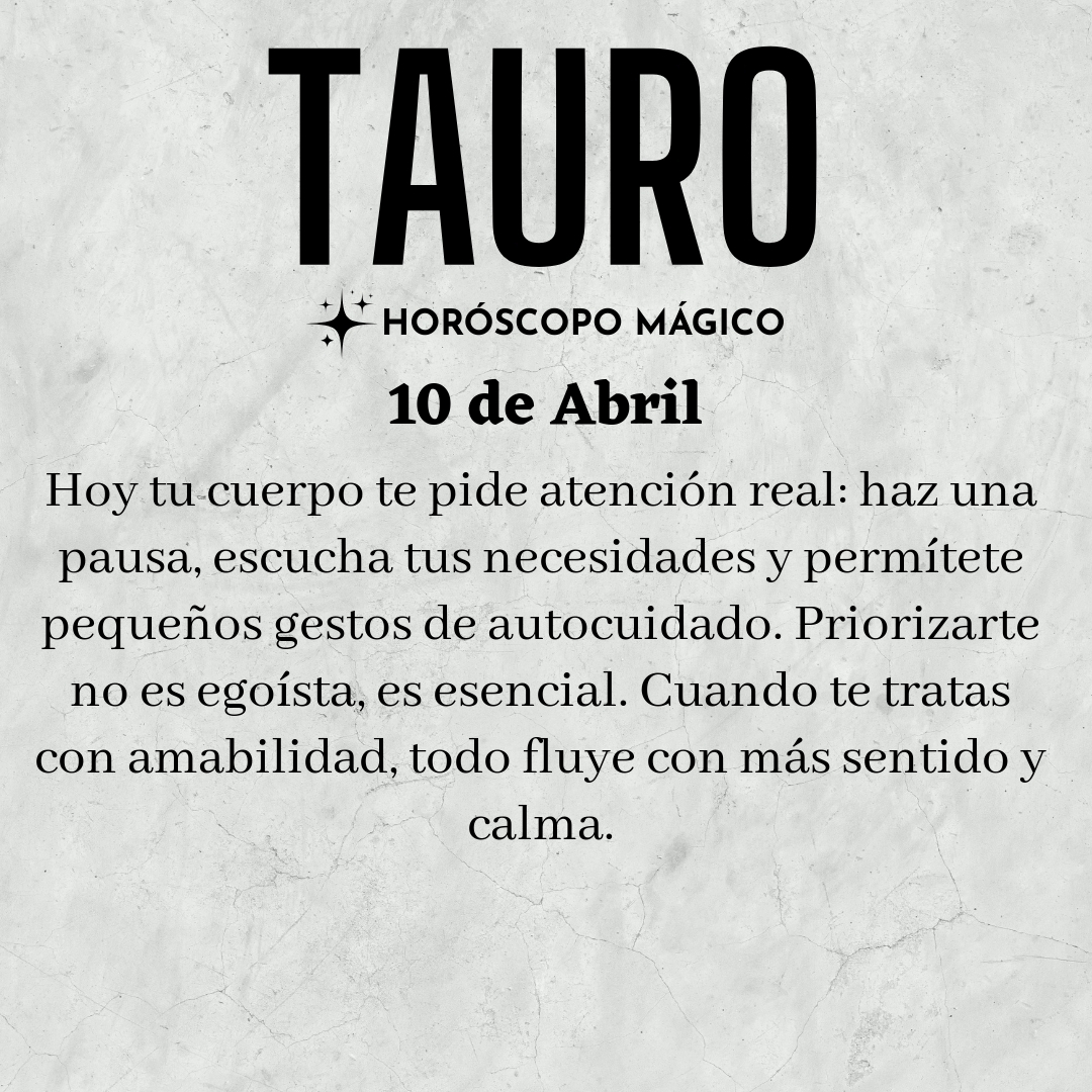 Hoy tu cuerpo te pide atención, Tauro. No se trata solo de descansar, sino de escucharte de verdad, de detenerte un momento en medio del ruido cotidiano y preguntarte cómo te sientes realmente. Has estado postergando pequeños gestos de autocuidado, creyendo que puedes con todo, pero tu energía necesita un respiro. A veces, la rutina te arrastra y olvidas que tu bienestar es frágil, que necesita ser protegido y cultivado con cariño. Haz una pausa consciente, siente tus hombros, tu respiración, tu pulso, y date cuenta de cómo cada parte de ti clama por un poco de ternura. El bienestar no es un lujo, es la base de todo lo demás, el cimiento sobre el que se construyen tus días.