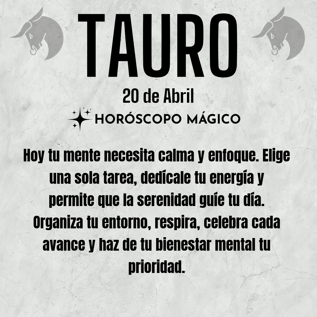 Hoy tu mente busca calma, Tauro. Has estado en mil cosas a la vez y necesitas reencontrar el foco. Sientes cómo los pensamientos se agolpan, uno tras otro, y a veces parece que el día no te da tregua. Sin embargo, en medio de ese torbellino, surge una necesidad profunda de detenerte, de escuchar el susurro de tu interior que te pide un respiro. La paz mental no es ausencia de problemas, sino la capacidad de estar presente y elegir en qué pones tu atención. Es ese instante en el que decides, conscientemente, no dejarte arrastrar por la prisa ni por las preocupaciones ajenas. Hoy, prioriza lo esencial y deja que lo accesorio espere, aunque te cueste soltar el control.