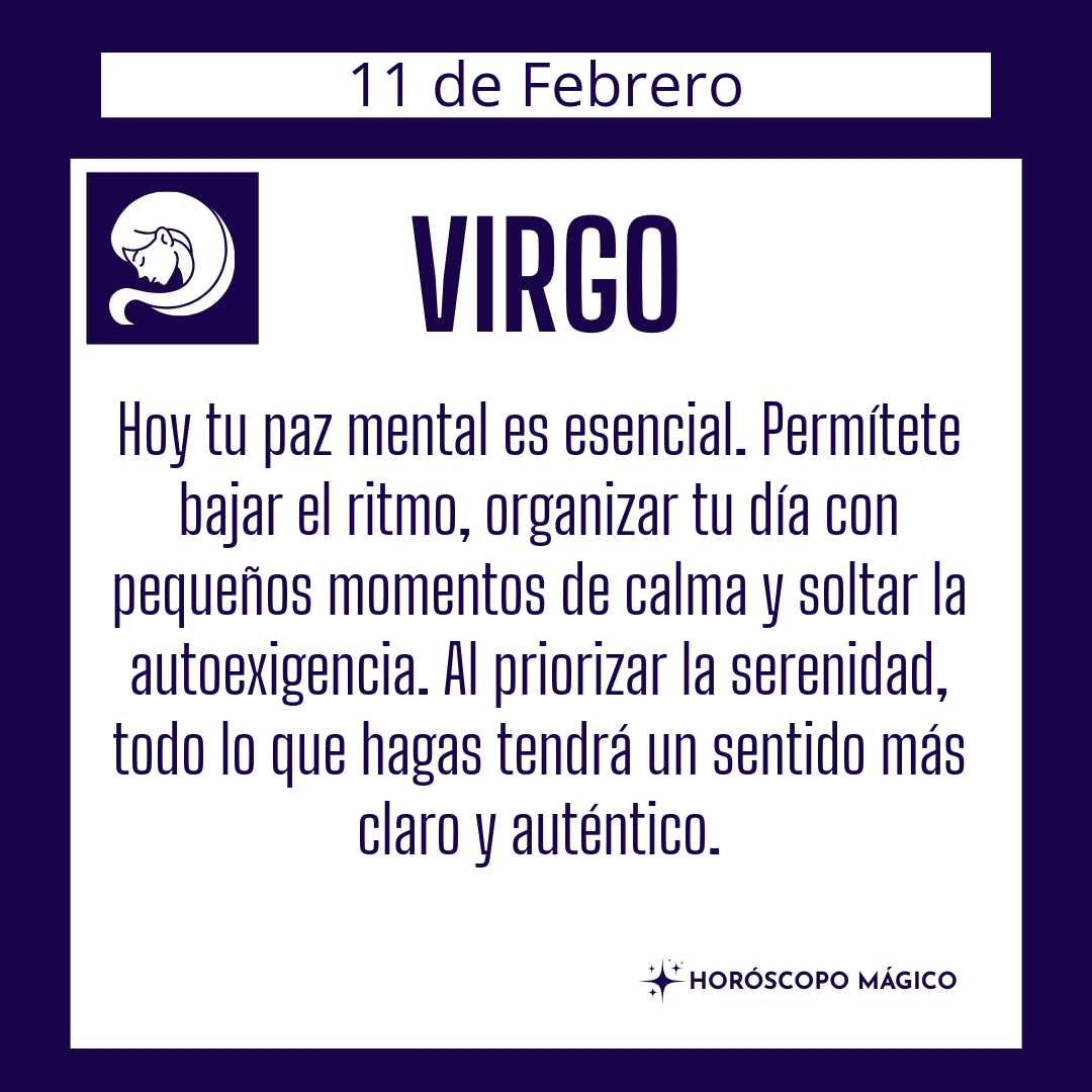 La paz mental es tu mayor tesoro hoy, Virgo. Has estado en medio de muchas exigencias y tu mente necesita un respiro. No se trata de desconectarte del mundo, sino de encontrar un espacio interno donde puedas respirar y reencontrar tu centro..
