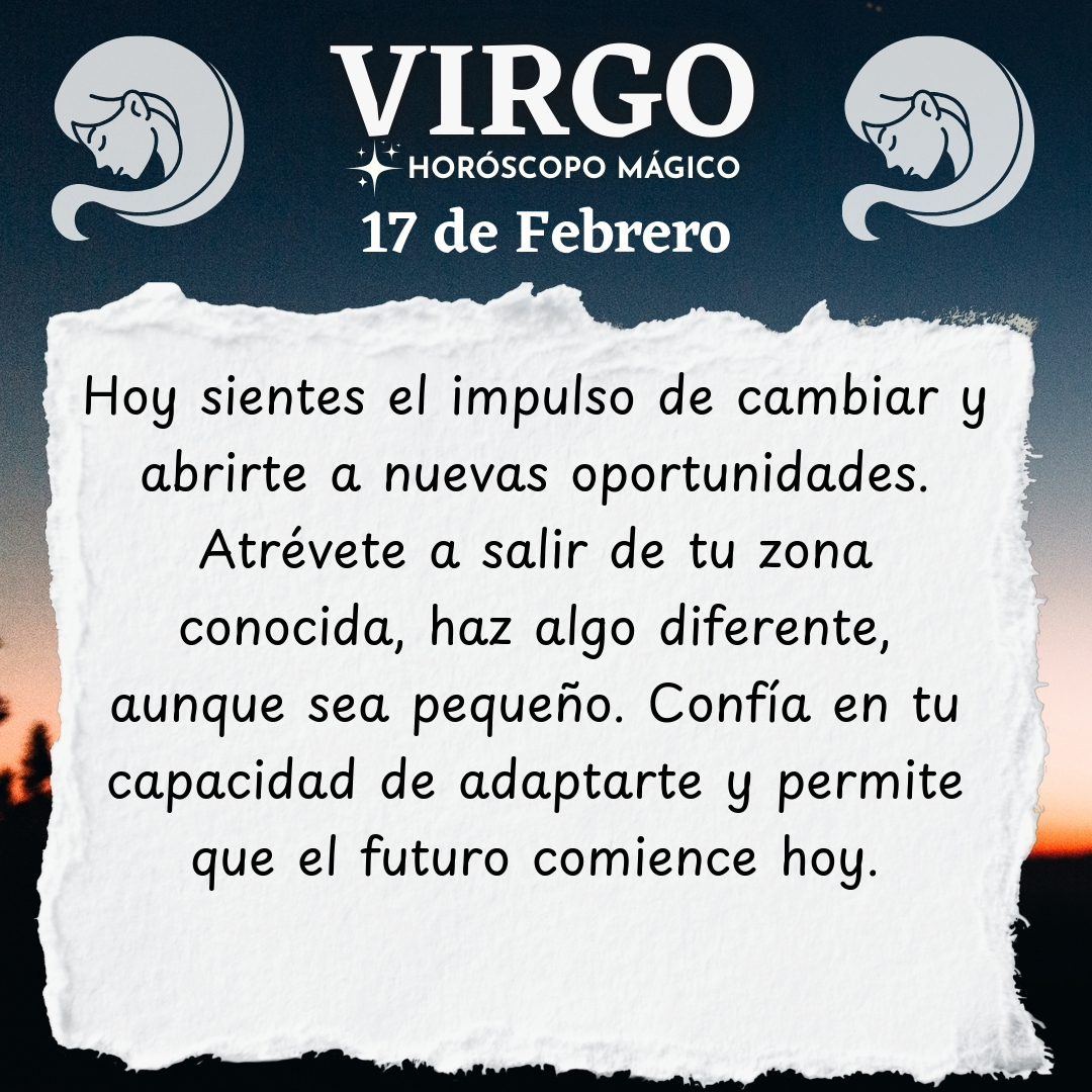 Un nuevo ciclo se asoma en tu horizonte, Virgo. Sientes el impulso de cambiar, de abrirte a oportunidades que antes te daban miedo o te parecían lejanas. No ignores esa inquietud interna; es la señal de que estás listo para dar un paso más allá de tu zona conocida..