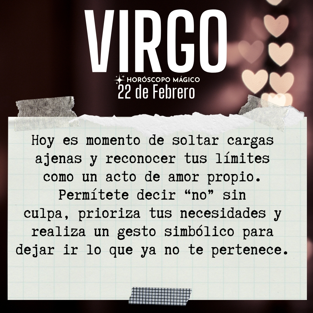 Hoy es un día para revisar tus límites, Virgo. Has cargado con responsabilidades ajenas por demasiado tiempo y eso empieza a pesar. Es momento de preguntarte qué cargas realmente te corresponden y cuáles puedes soltar. No tienes que demostrar nada a nadie; tu valor no depende de cuánto hagas por los demás..