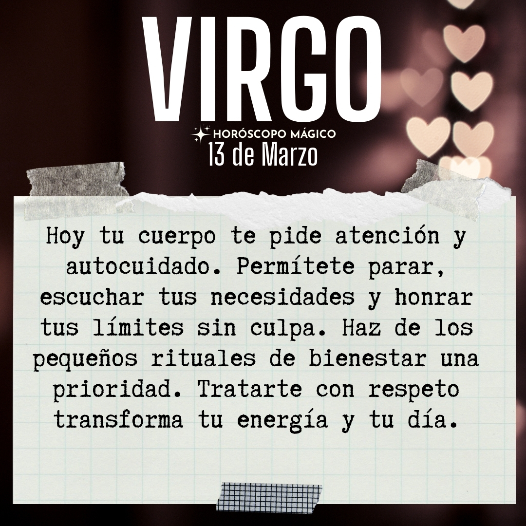 Hoy tu cuerpo te pide atención, Virgo. Has estado tan pendiente de las exigencias externas que olvidaste escuchar las señales sutiles que te envía tu propio organismo. Quizá has sentido ese leve cansancio en los hombros, o una tensión que se instala sin que te des cuenta, como un susurro que insiste en recordarte que también eres vulnerable. No se trata solo de descansar, sino de nutrirte con pequeños gestos de autocuidado: una comida preparada con cariño, una caminata sin prisa, un rato de silencio lejos de pantallas. Tu energía necesita ser recargada desde lo simple, desde lo cotidiano, desde esos detalles que a veces pasas por alto pero que son esenciales para tu equilibrio.