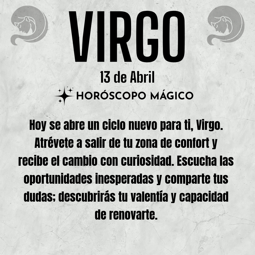 Un nuevo ciclo se asoma en tu horizonte, Virgo. Hay cambios que ya no puedes evitar, y aunque la incertidumbre asuste, también trae oportunidades frescas. Hoy es un buen día para mirar hacia adelante con curiosidad, no con miedo. Lo que termina deja espacio para lo que está por llegar. A veces, el cierre de una etapa puede sentirse como una pérdida, pero en realidad es el preludio de algo mucho más grande y luminoso. Permítete respirar hondo y observar cómo, poco a poco, el universo te muestra nuevas sendas, incluso si aún no puedes verlas con claridad.